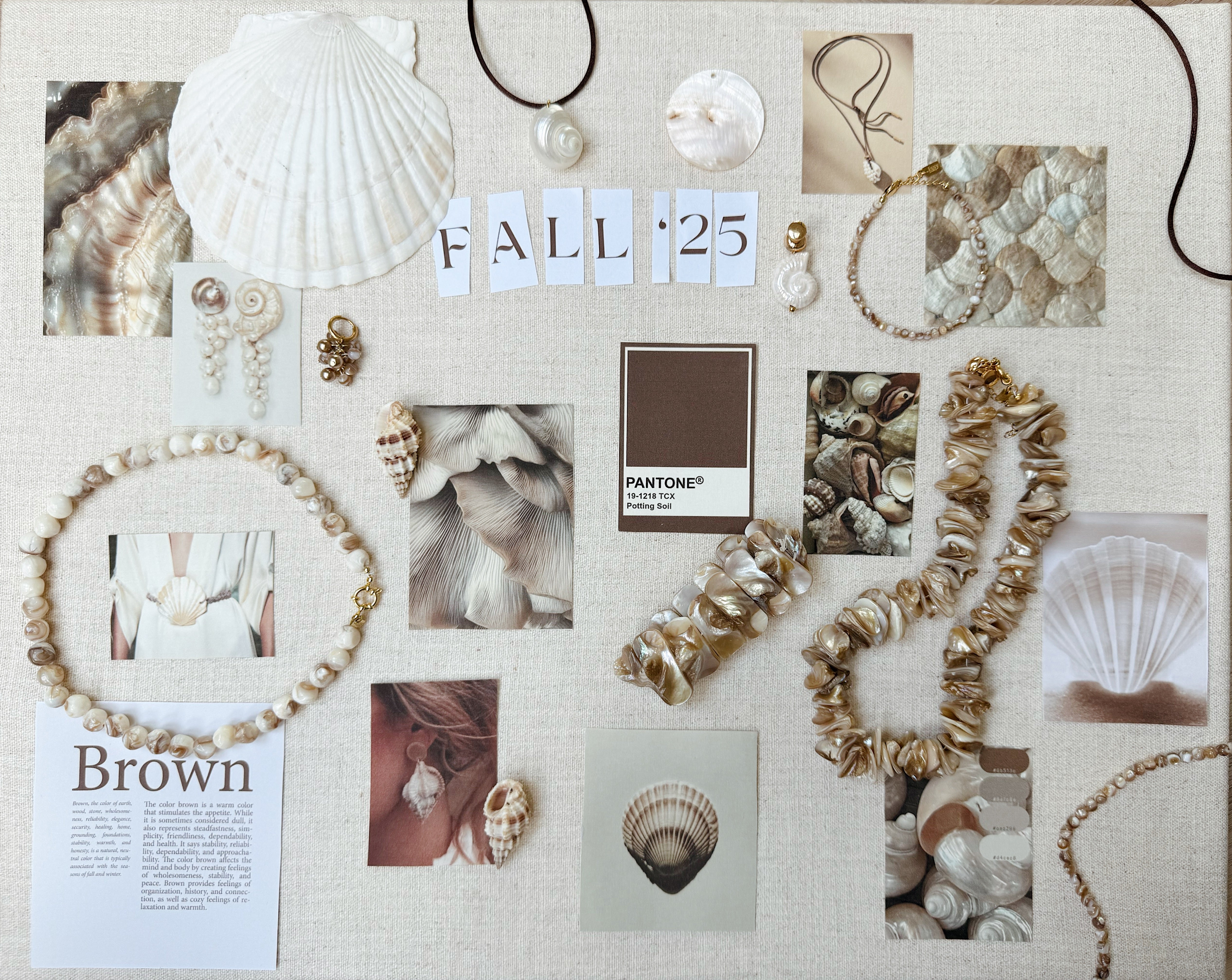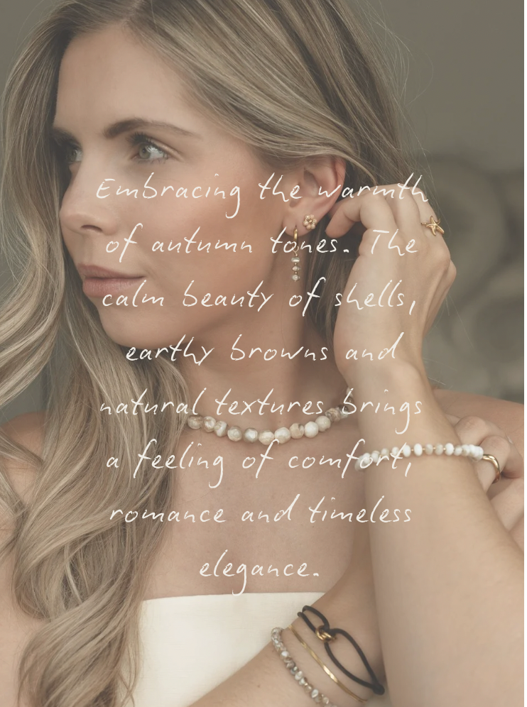 Een vertaling van de warme herfsttonen, schelpen en aardse tinten naar verfijnde ontwerpen.
