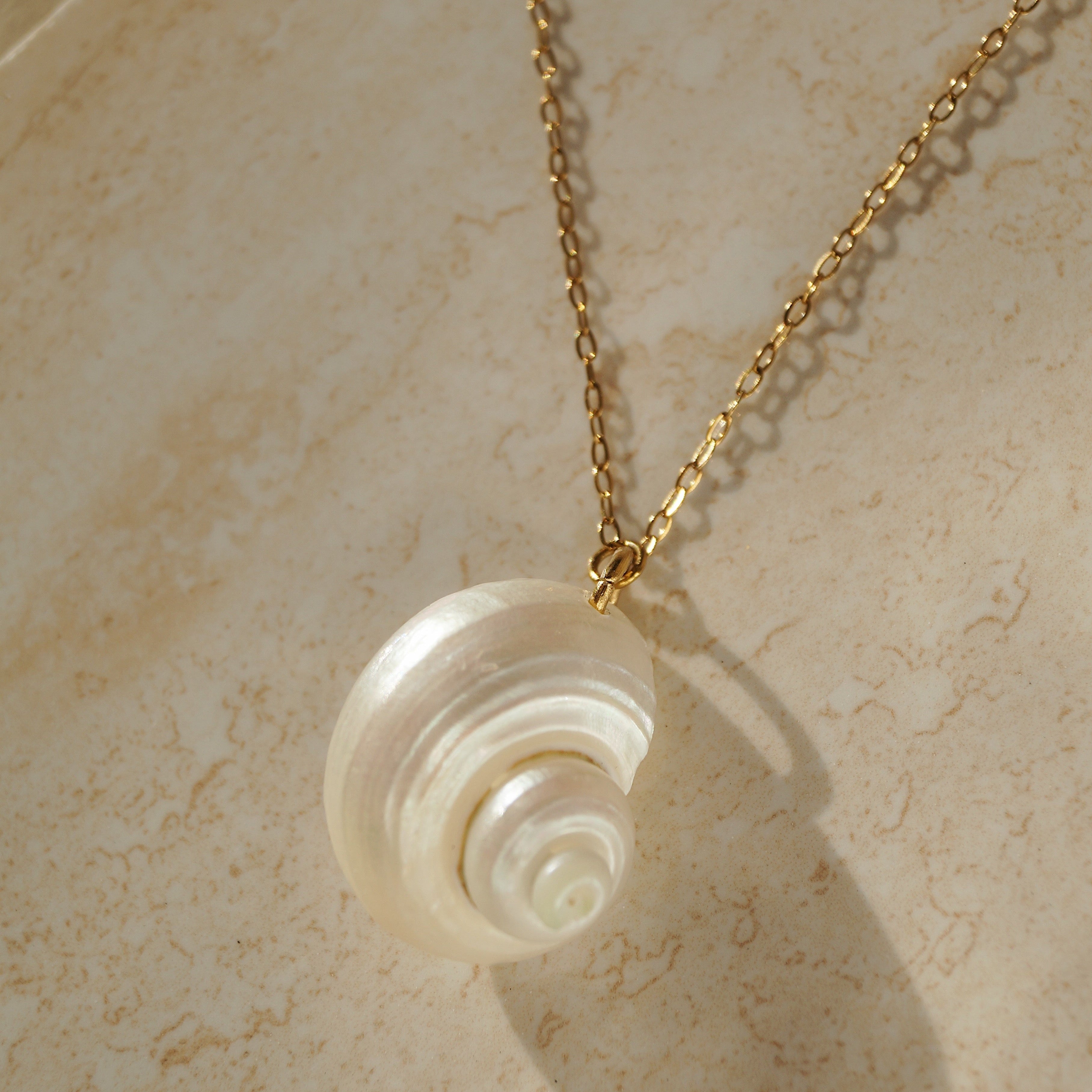 De Cala Necklace uit de Ocean Dust Collection is geïnspireerd op de glanzende pracht van zee-schelpen. De opvallende hanger van natuurlijke schelp heeft een unieke, spiraalvormige structuur die doet denken aan zacht rollende golven.