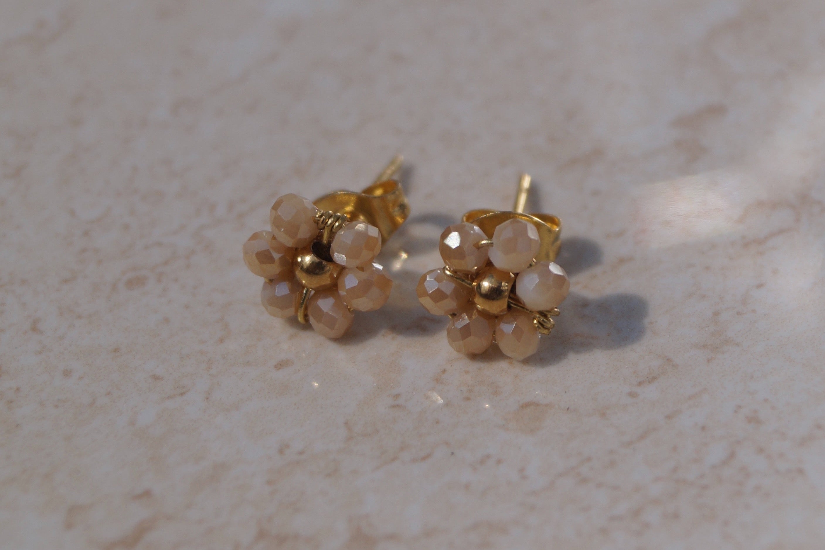 Stainless steel knopjes met facet kralen. Leuk voor je eerste of tweede gaatje! Tip: combineer de studs als setje met de Flower Earrings.