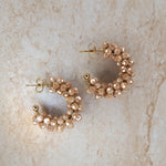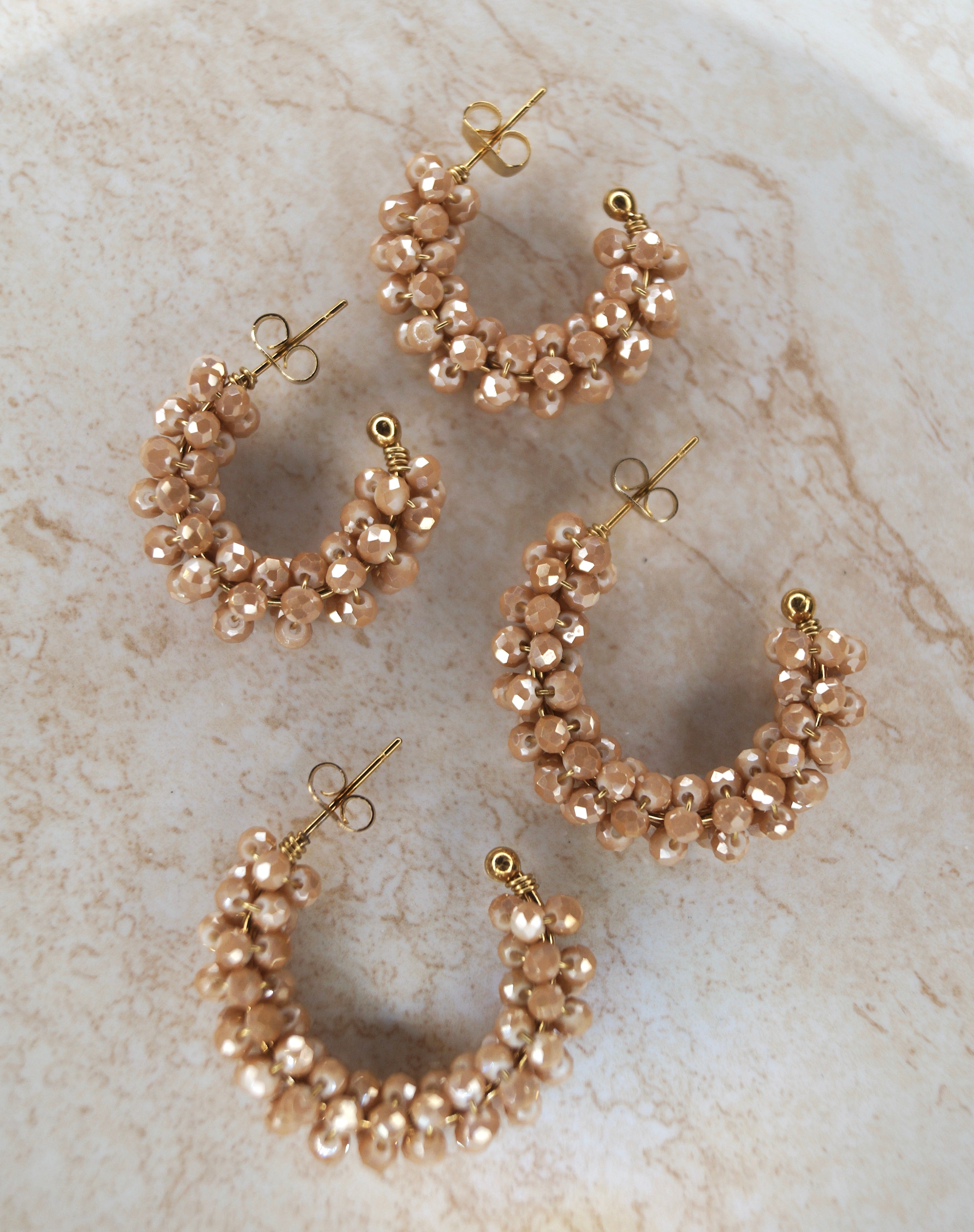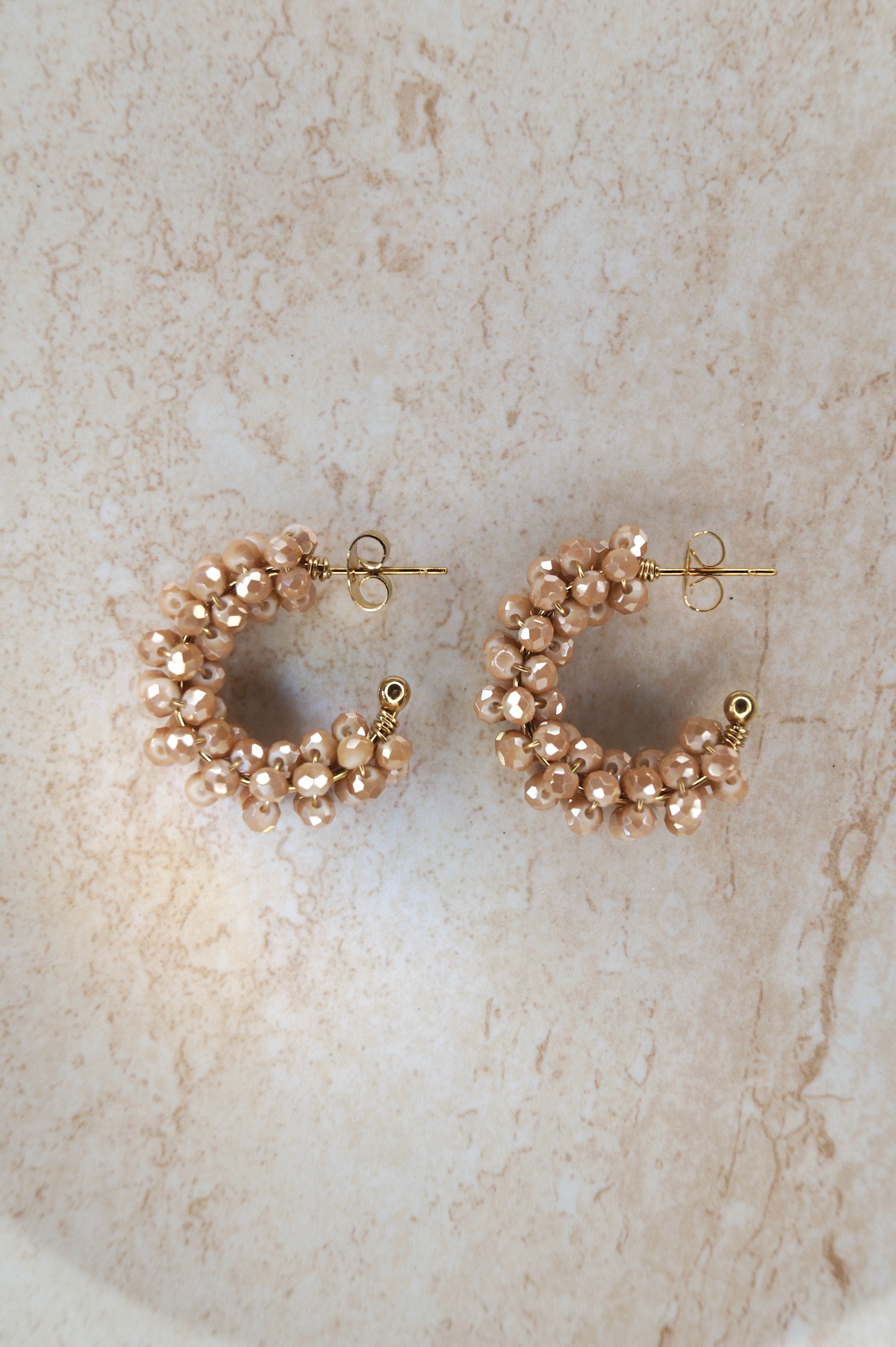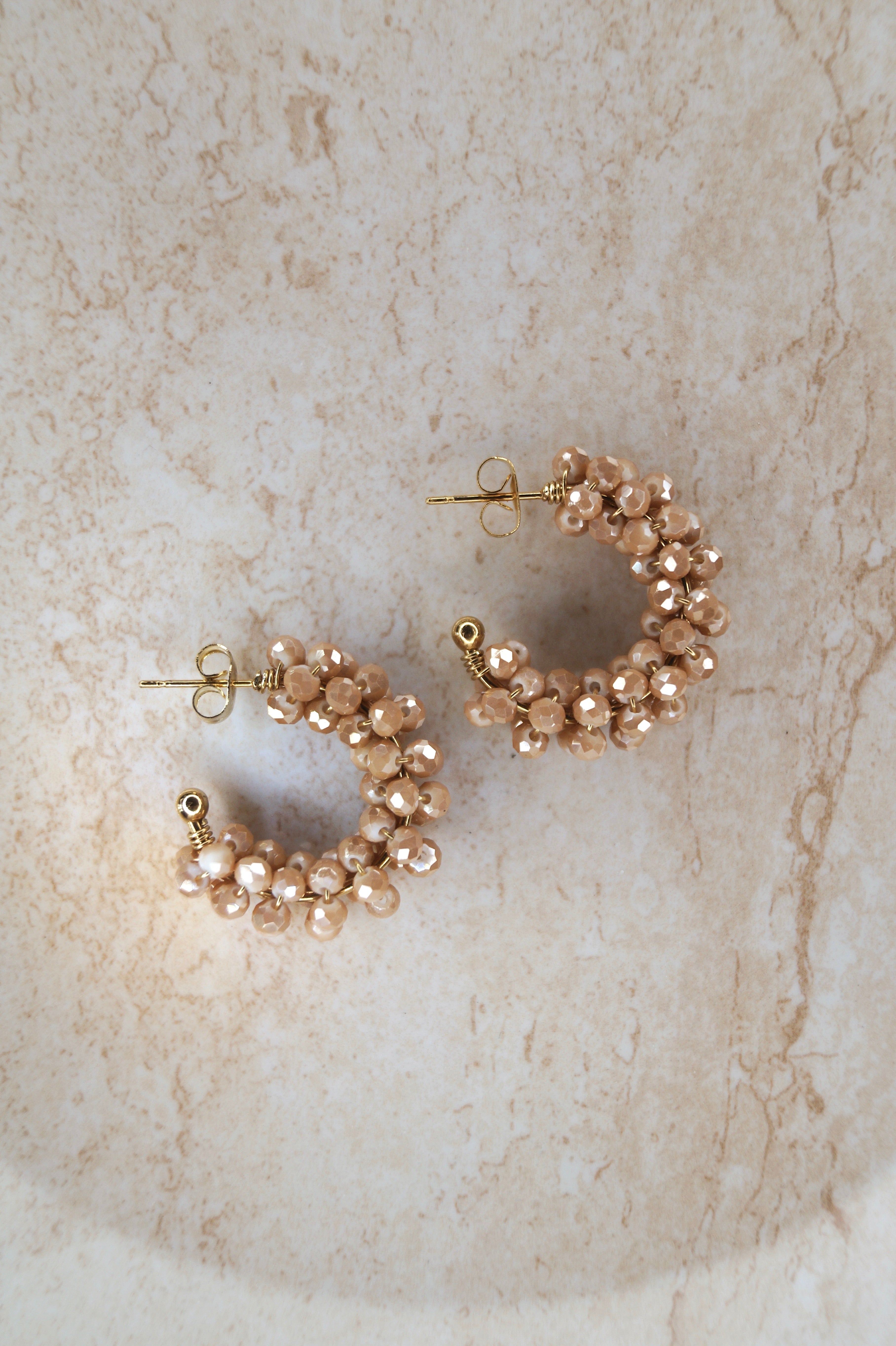 Deze handgemaakte oorbellen zijn van hoogwaardig stainless steel omringd met prachtige beige facet kralen.