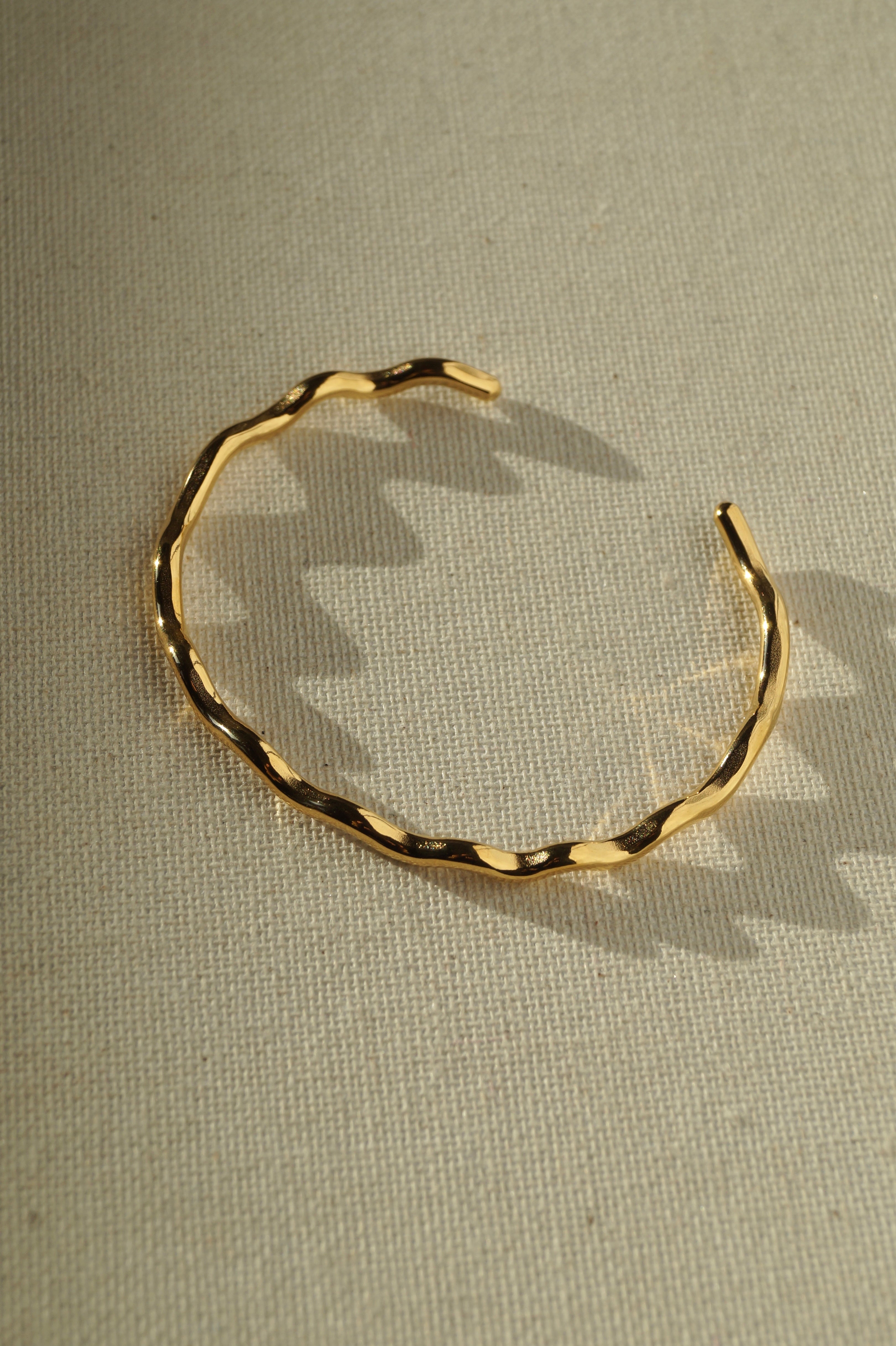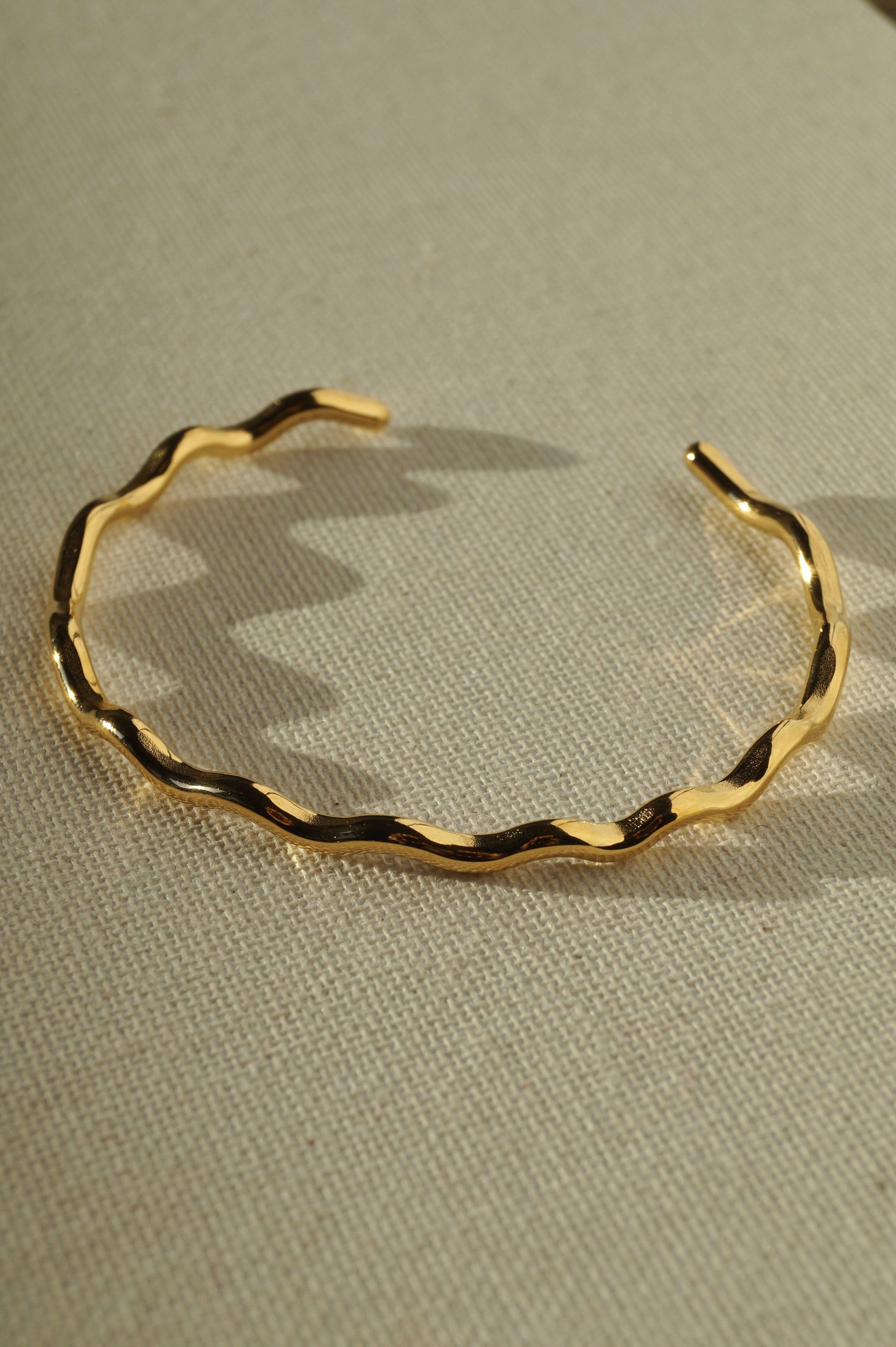 De Golden Wave Bracelet uit de Ocean Dust Collection is een tijdloze bangle met een subtiele golfstructuur die de beweging van de zee weerspiegelt. De zachte glans en golvende vorm geven een elegante, maar toch speelse uitstraling.