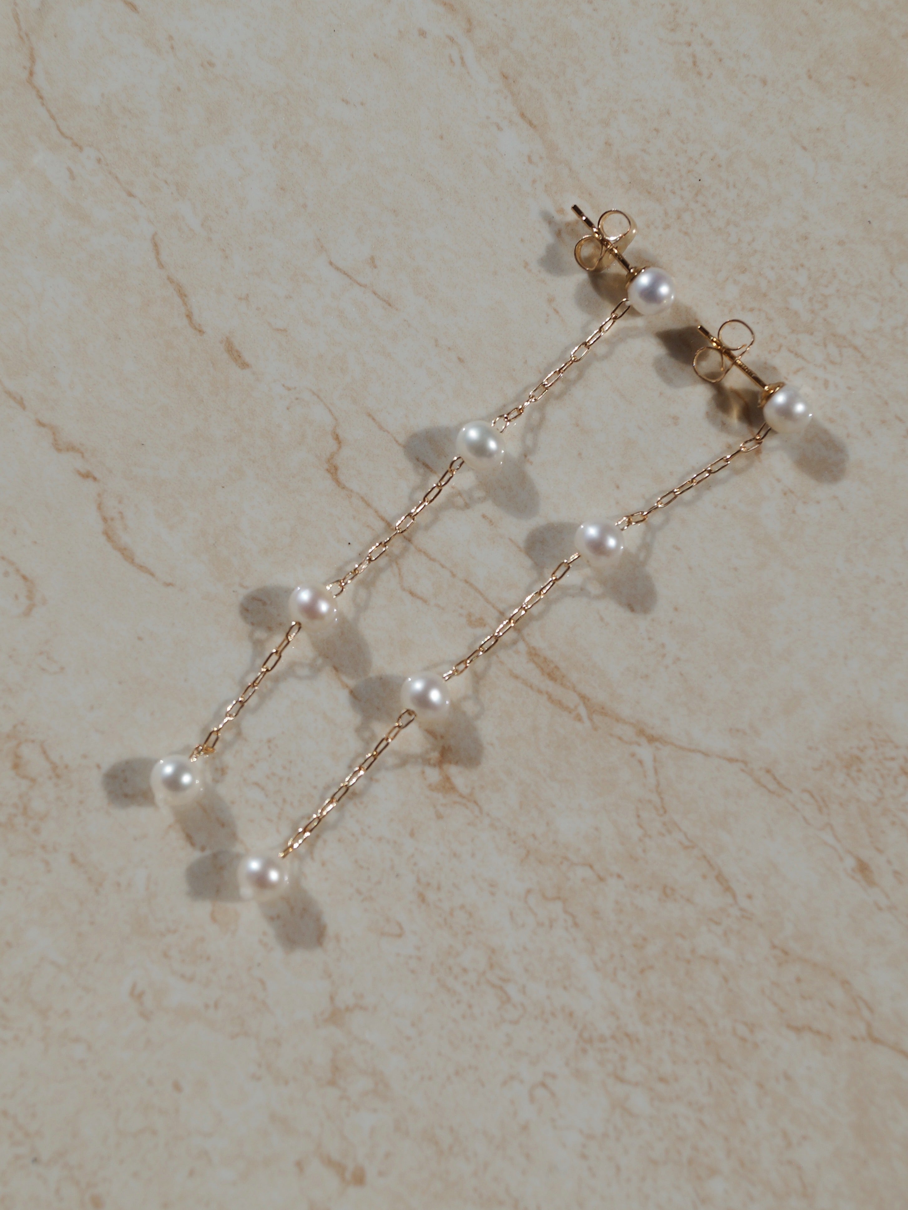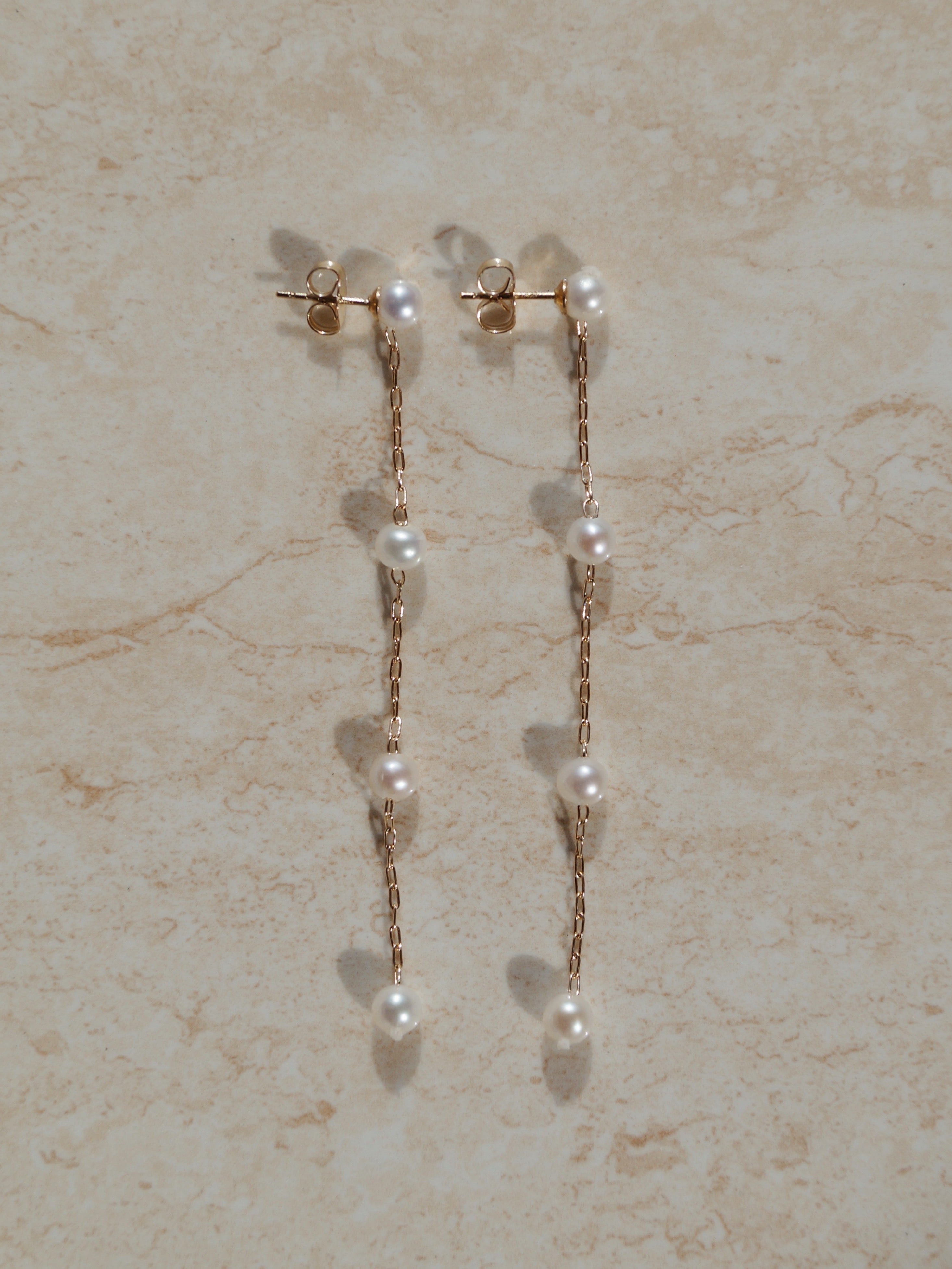 De Kate Earrings bestaan uit vier subtiele natuurlijke zoetwaterparels. Deze zijn met elkaar verbonden door een gouden chain. De oorbellen zijn prachtig te combineren met de andere sieraden uit de Kate reeks.