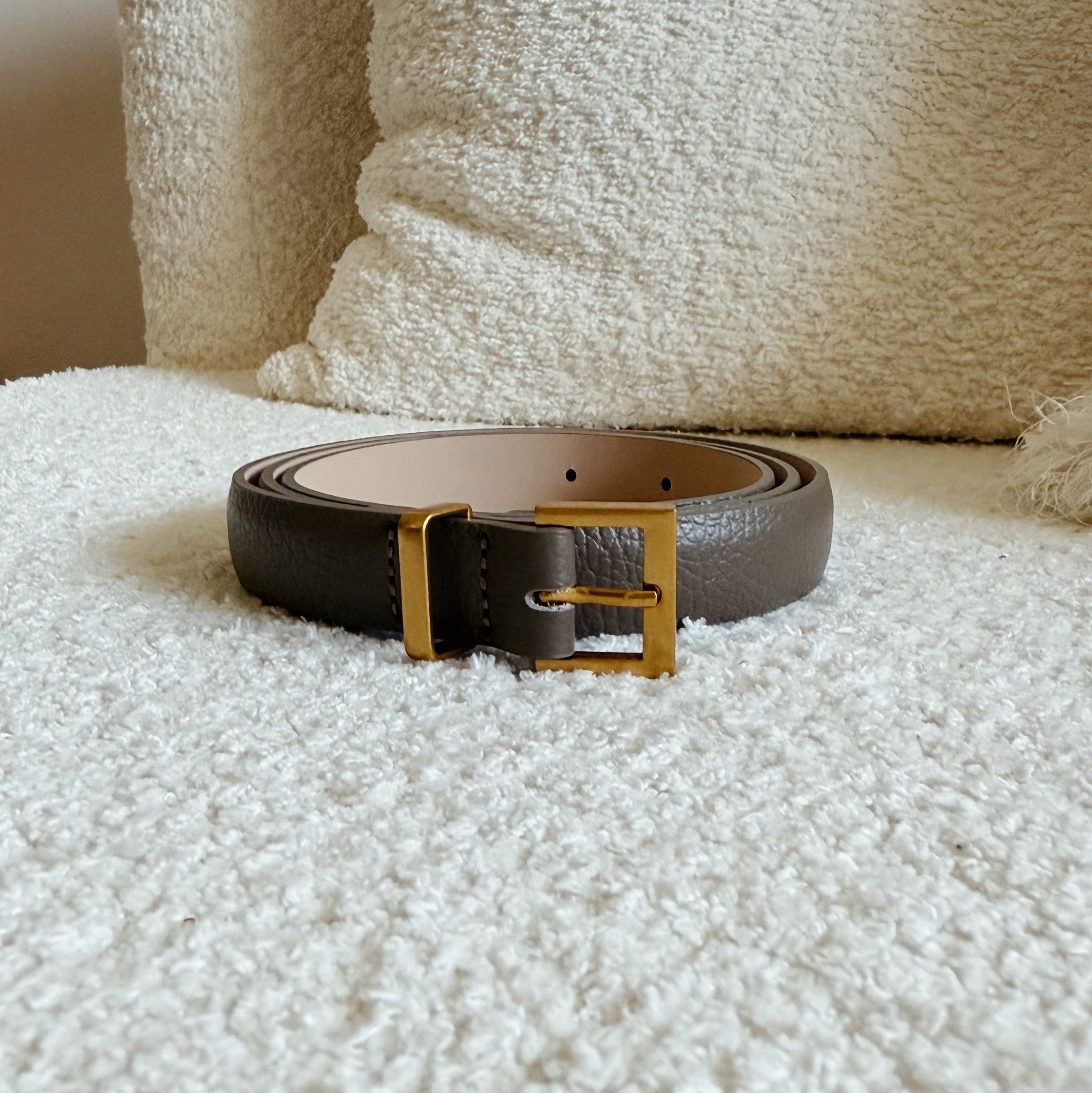 Leren taupe of diep bruin kleurige riem met messing gouden gesp, verkrijgbaar in verschillende lengte maten.