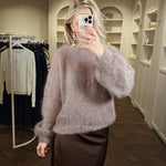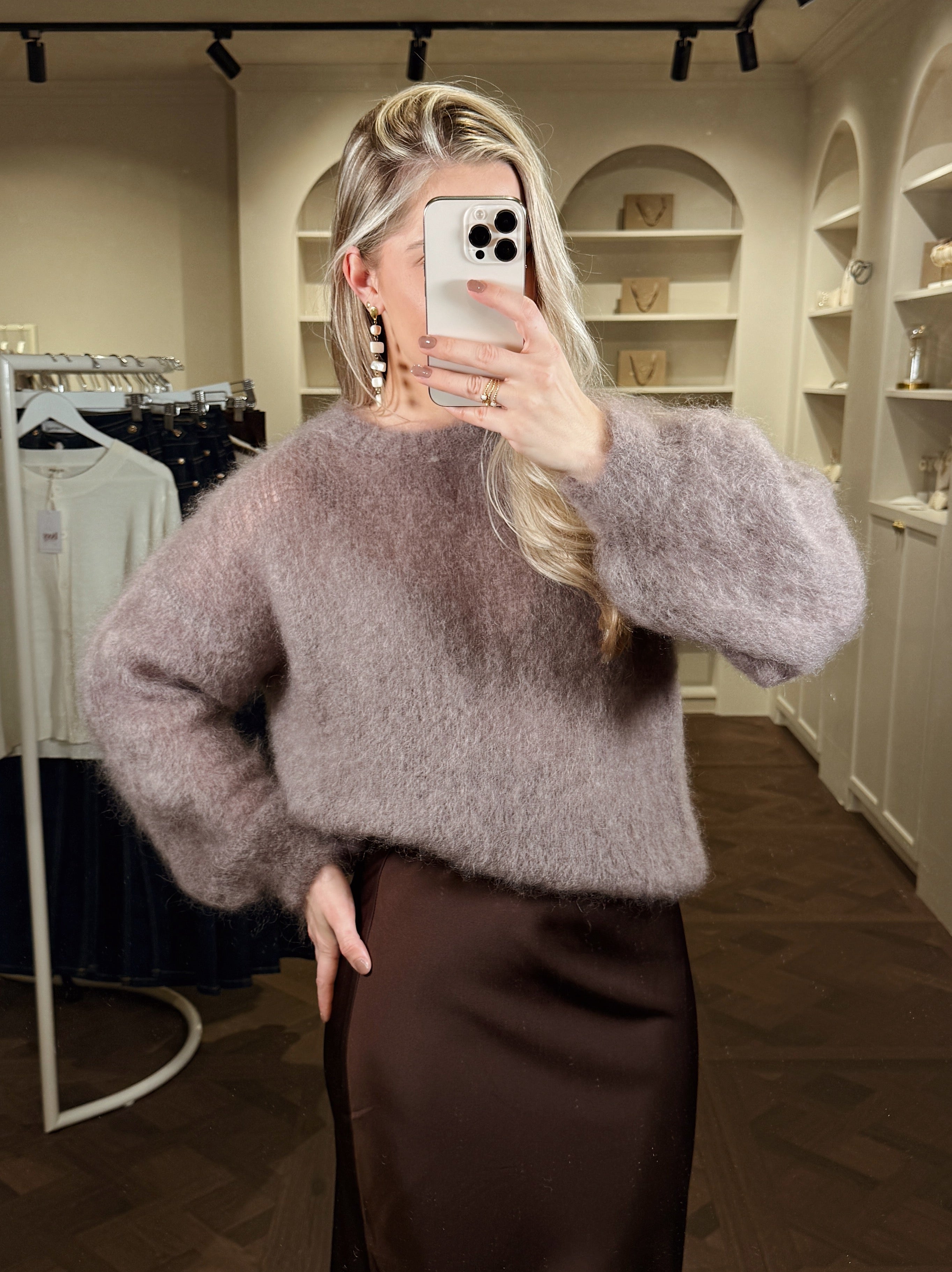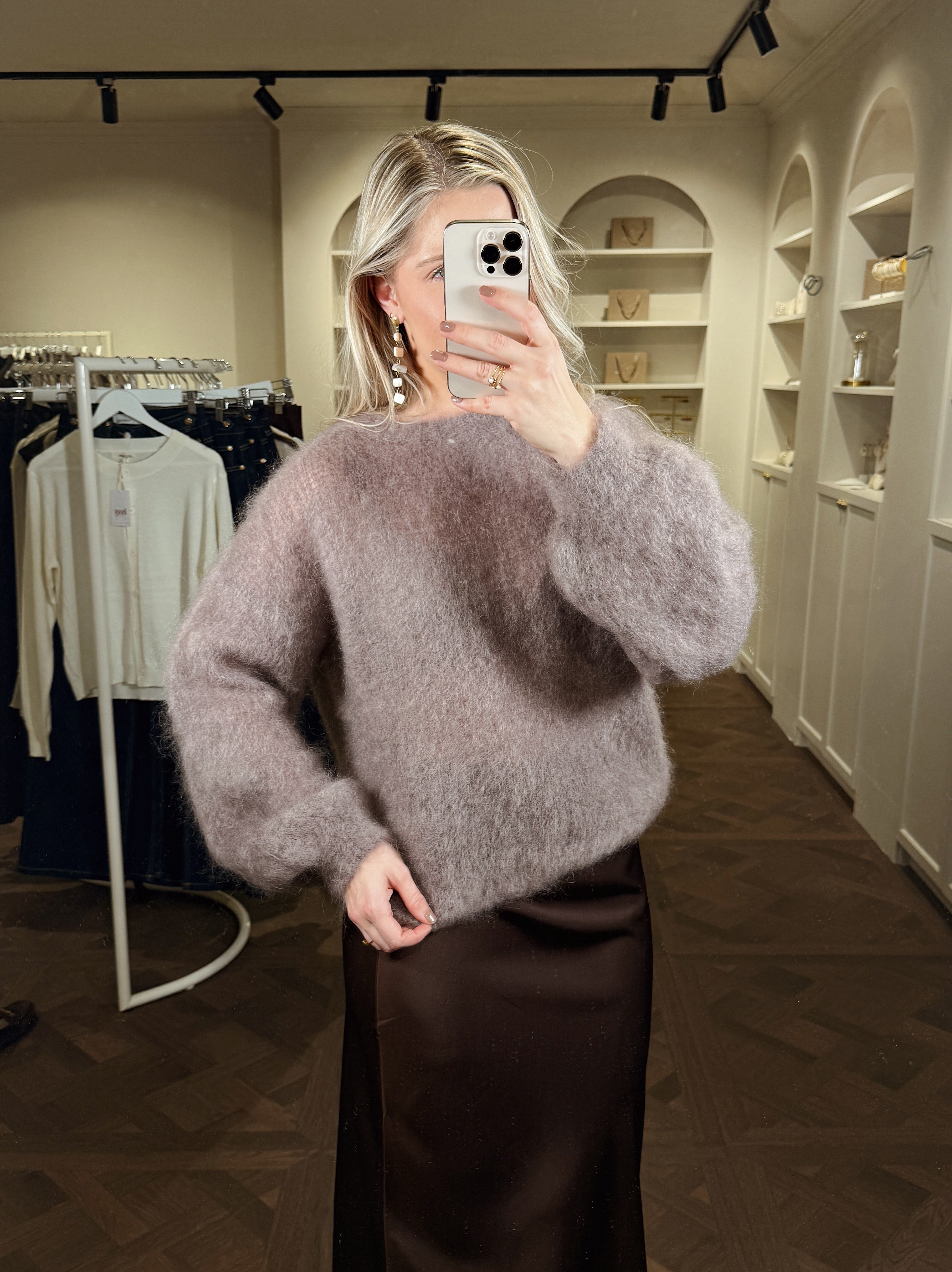 De knit heeft een subtiel fluffy effect, valt mooi recht en voelt ultra-comfortabel aan op de huid. Een echte wardrobe essential voor cozy days en stijlvolle avonden.