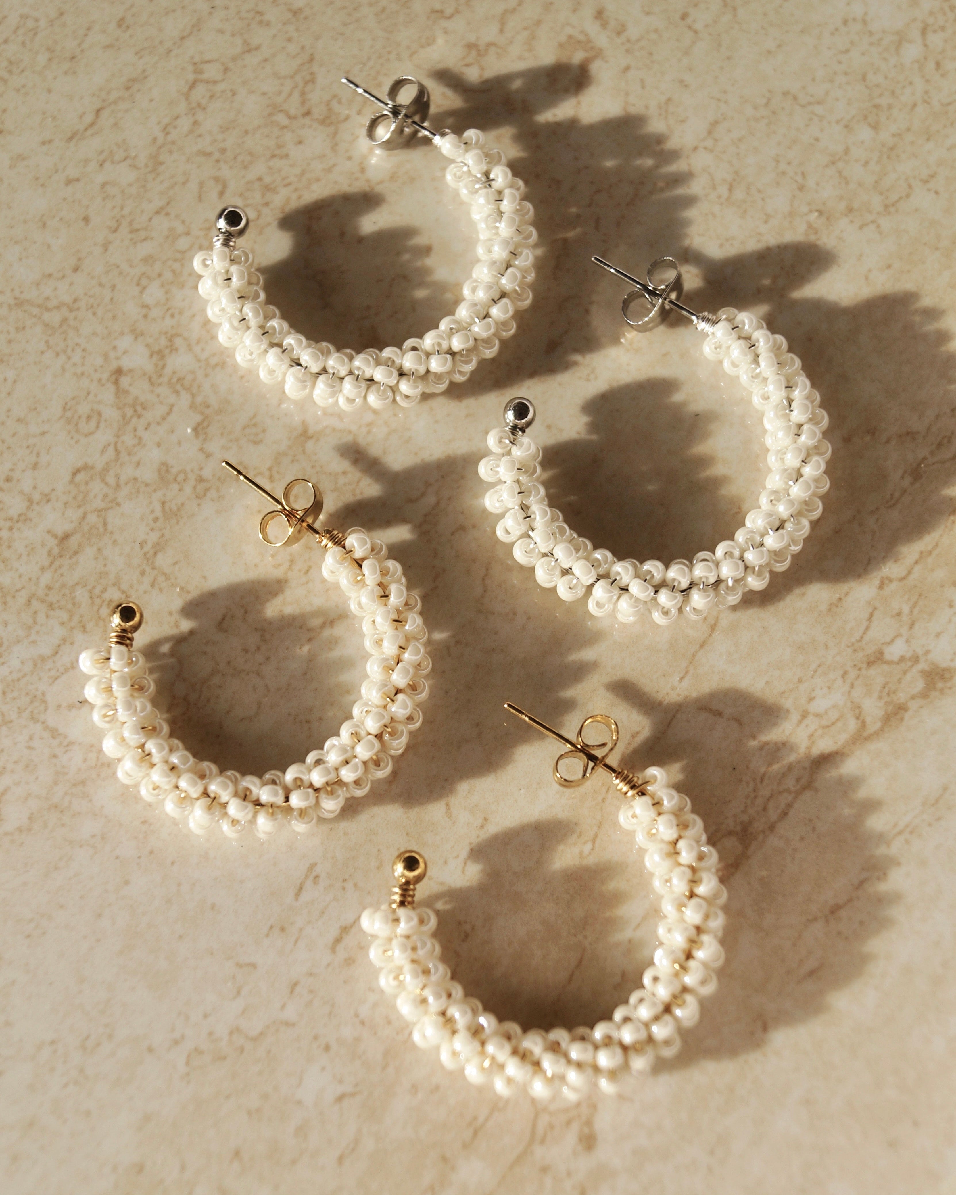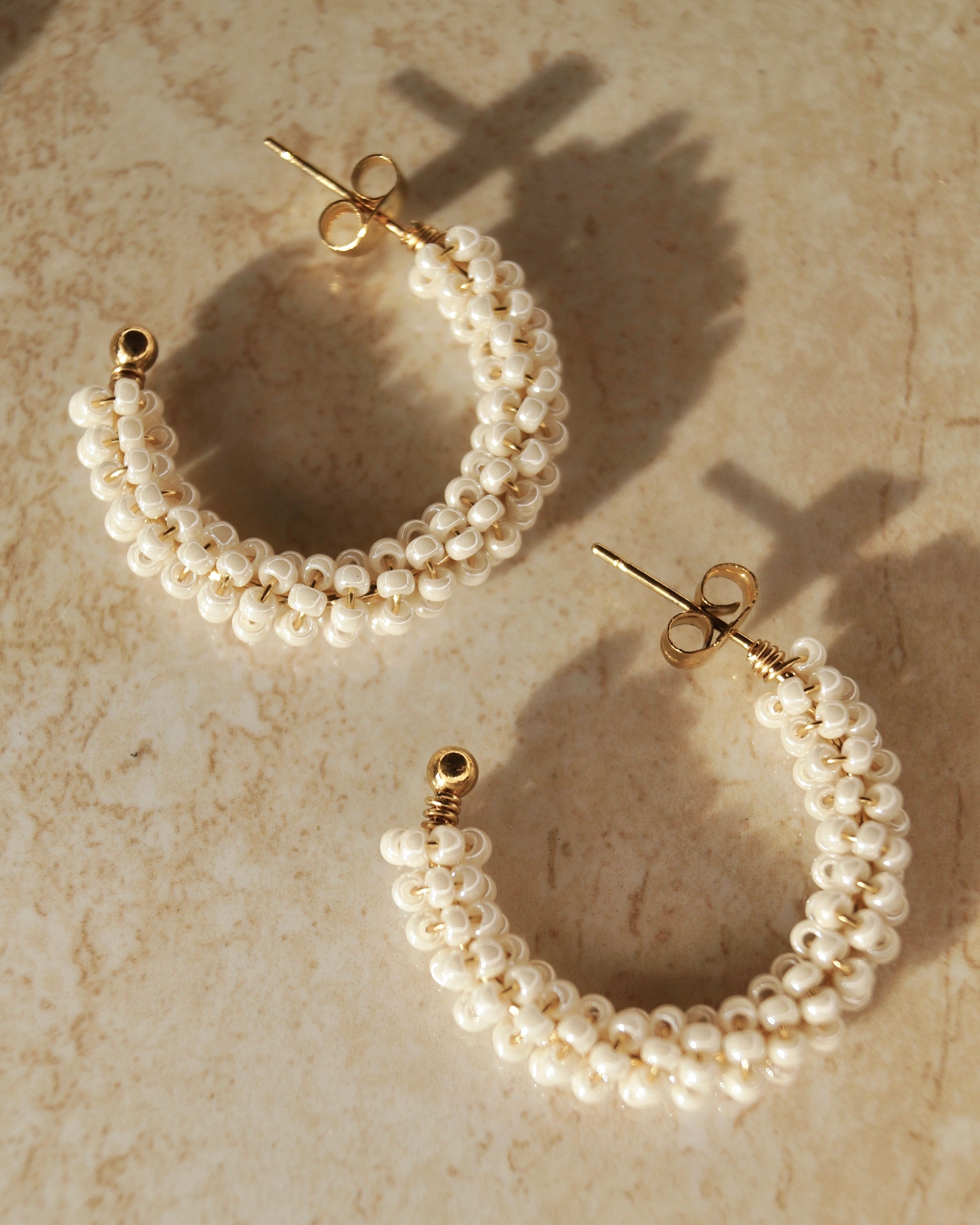 Deze handgemaakte oorbellen zijn van stainless steel met hoogwaardige miyuki rocailles in het off white.
