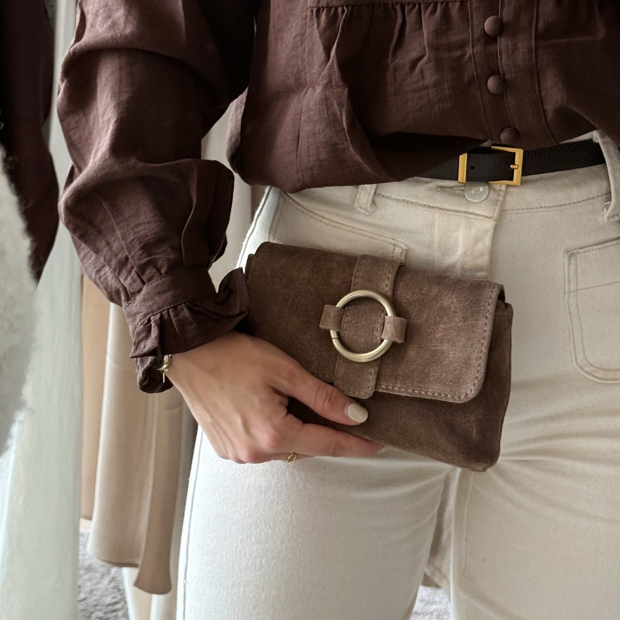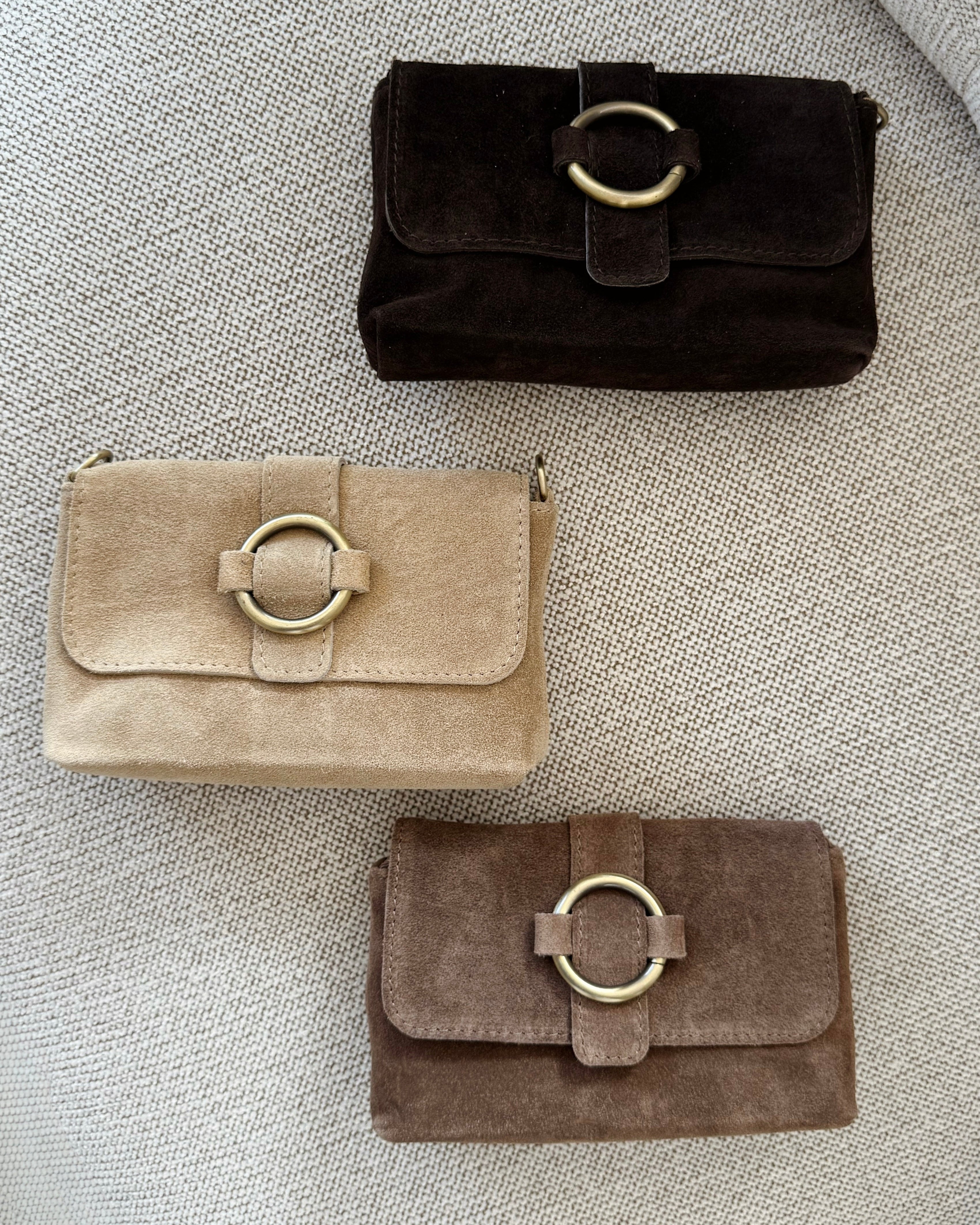 DelenDe Suède Crossbody Bag is een stijlvolle tas met een minimalistisch design. Het zachte suède leer en de bronskleurige hardware geven de tas een elegante uitstraling, terwijl het lange verstelbare hengsel zorgt voor optimaal draagcomfort. Dankzij het compacte formaat is dit de perfecte tas om je essentials stijlvol mee te nemen.