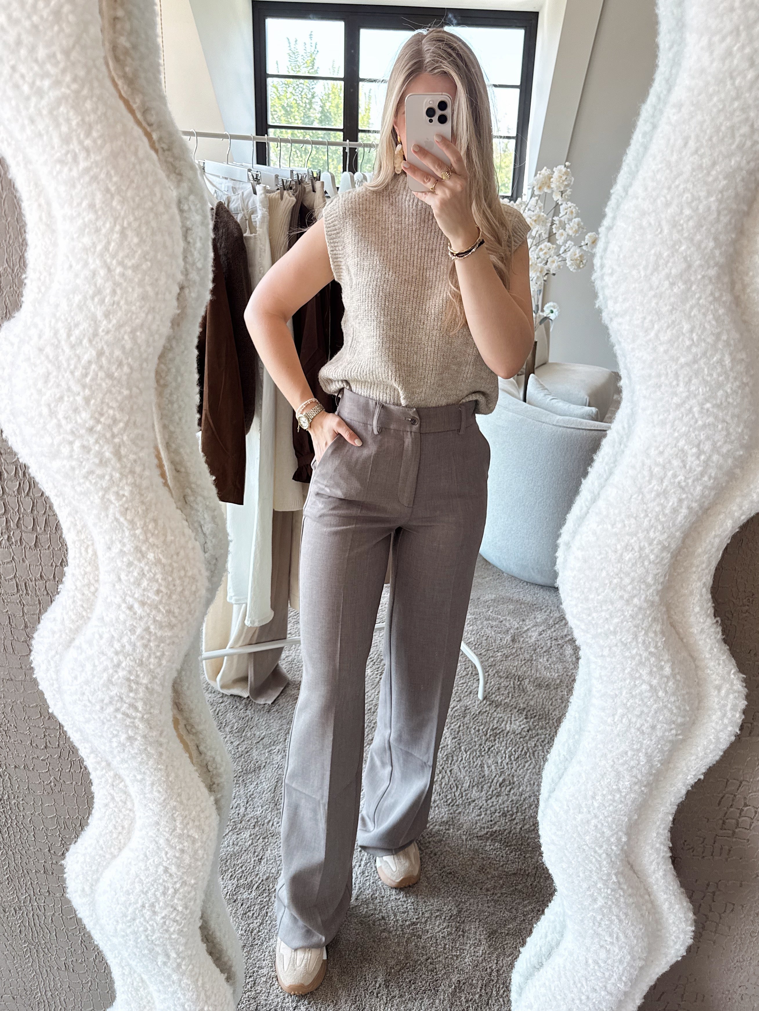 DelenOnze Tess Pantalon is een elegante broek met een tijdloos recht model. De hoge taille en rechte pijpen zorgen voor een flatterende pasvorm die zowel chic als comfortabel aanvoelt. Perfect te combineren met de Tess Jacket voor een complete set, maar ook los te dragen met een knit of blouse.